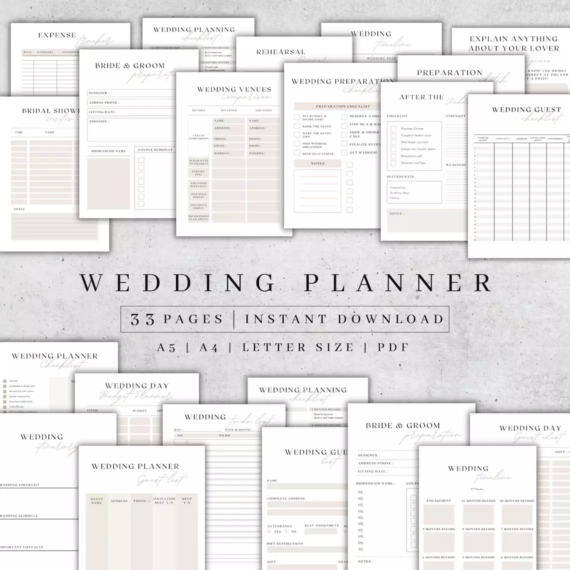 • You receive 33 printable planner pages in PDF format.
