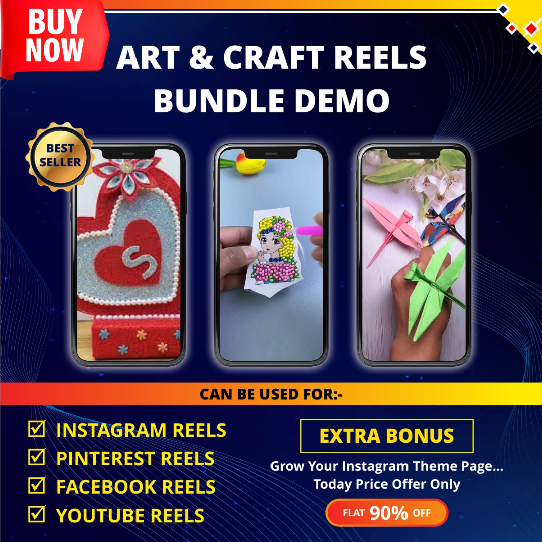 GET  9000+ ART AND CRAFT REELS BUNDLE FOR CONTENT CREATORS, STUDENTS, INFLUENCERS, BUSINESS OWNERS. DOWNLOAD PUT YOUR LOGO AND PUBLISH.