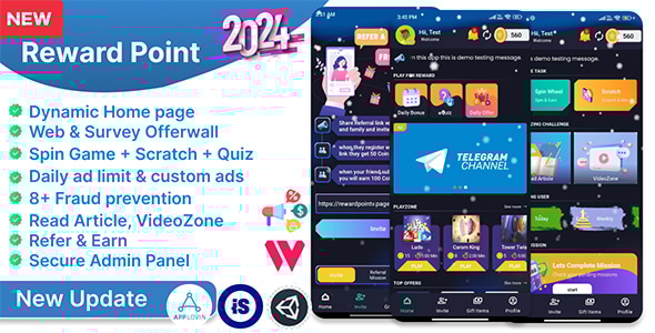 Reward Point App + Offers is the best app for users who want to earn cash. there are many options for earning cash Users can earn cash by downloading apps + inviting friends also earn with watch videos via earn simple app beautiful interface and admin panel